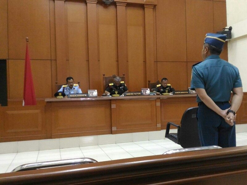 Setelah semua dakwaan dibacakan oleh Odmilti II Jakarta dan tidak ada keberatan dari terdakwa maka Hakim Ketua Brigjen TNI Deddy Suryanto, S.H., M.H. yang didampingi Hakim Anggota I Marsma TNI Priyo Mustiko, S.H. dan Hakim Anggota II Brigjen TNI Apel Ginting, S.H., M.H. memutuskan sidang ditutup.