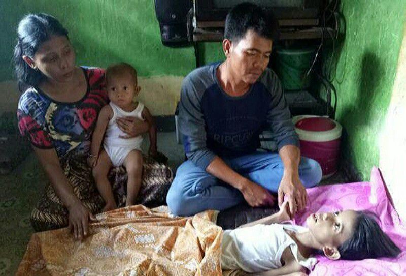 Sang ayah, Afrizon (30) hanya seorang penjaja roti keliling yang hanya sanggup membawa anaknya ke pengobatan alternatif yang hingga kini belum memperlihatkan tanda-tanda berangsur sehat.