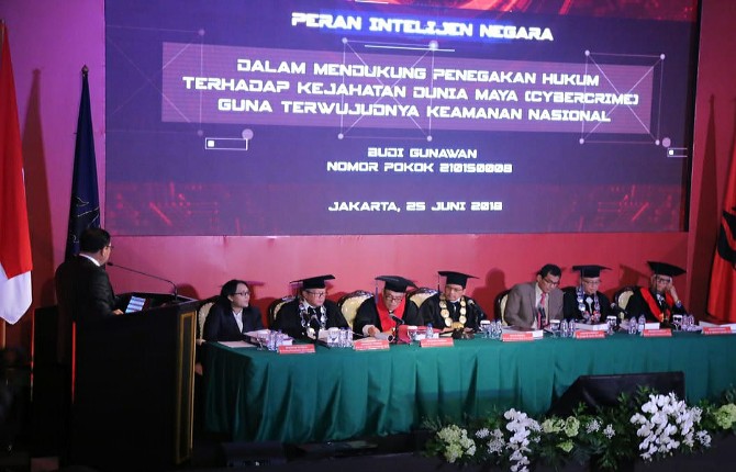 Drs. Budi Gunawan SH, MSi, Ph.D, meraih gelar doktor atas disertasinya mengenai peran Intelejen negara dalam mendukung penegakan hukum terhadap kejahatan dunia maya (Cybercrime) guna terwujudnya keamanan nasional.