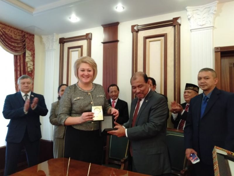 “Indonesia yang menganut semi bikameral system yang terdiri dari Senator dari 34 provinsi dan lebih dari 250 juta rakyat Indonesia, sangat siap untuk menjalin kerja sama bilateral maupun multilateral dalam beberapa sektor secara sangat bersahabat. Dan melanjutkan program kerja sama ekonomi dan budaya yang telah terjalin selama ini di antara Indonesia dan Rusia,” imbuh Senator Provinsi Maluku itu.