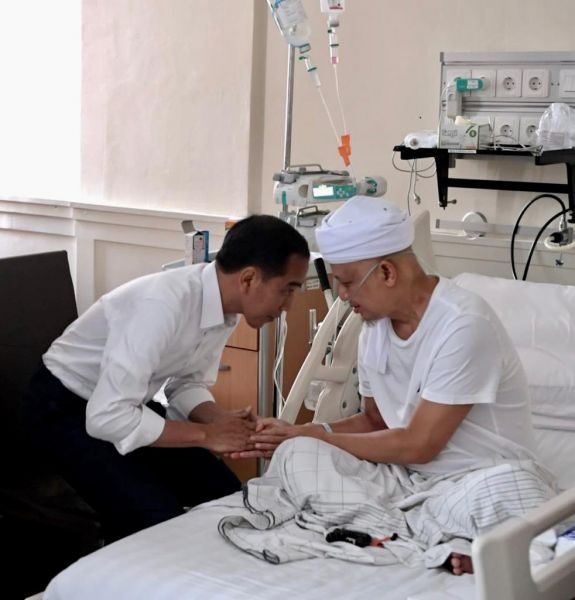 Sebelum acara pelantikan, Presiden juga sempat menjenguk ustadz kelahiran Banjarmasin 49 tahun silam ini di RSCM.