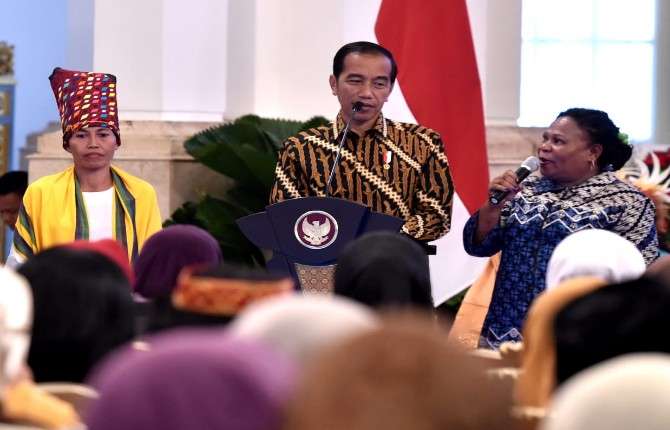 Jakarta – Presiden Joko Widodo bersilaturahmi dengan ratusan perempuan yang berjuang di akar rumput untuk menyuarakan atau memperjuangkan hak perempuan dalam sejumlah isu. Pertemuan berlangsung di Istana Negara, Jakarta, pada Rabu, 6 Maret 2019.