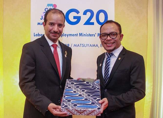 Matsuyama – Menteri Ketenagakerjaan M. Hanif Dhakiri menggelar pertemuan bilateral dengan Wakil Menteri Tenaga Kerja dan Pembangunan Sosial Arab Saudi Dr. Abdullah Abuthnain, di Matsuyama, Jepang, Minggu (1/9/2019) waktu setempat.