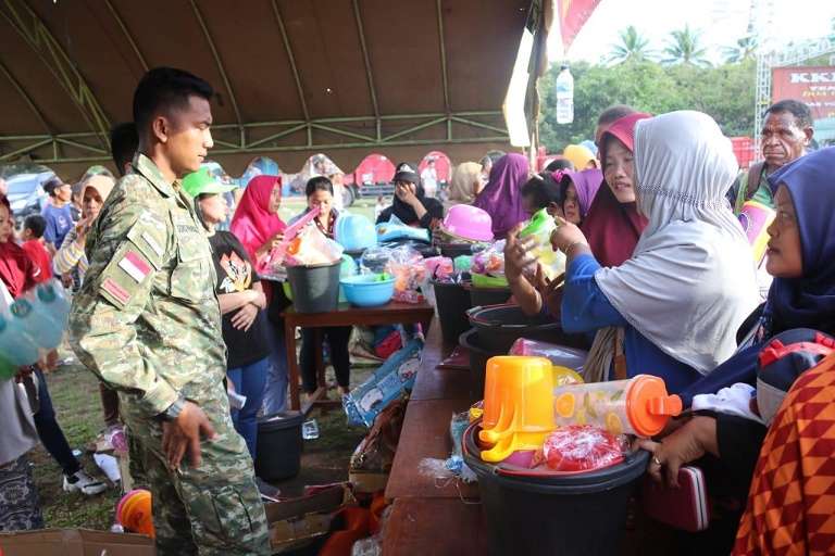 “Barang-barang yang dijual dalam pasar murah didatangkan langsung dari Jawa, meliputi sembako, alat-alat dapur, sepatu, karpet, barang perabotan dari keramik, bantal dan baju layak pakai. Semua barang dijual mulai harga Rp. 5000 – Rp. 30.000, ada juga pembagian sembako gratis, makan siang kepada masyarakat yang hadir dengan menukarkan kupon, serta doorprize bagi yang beruntung,” kata Mayor Inf Rizky Aditya.
