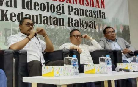 Turut hadir dan menjadi narasumber Wakil Ketua Badan Sosialisasi MPR Syaifullah Tamliha dan Pengamat Komunikasi Publik Uiniversitas Gajah Mada (UGM) Nyarwi Ahmad.