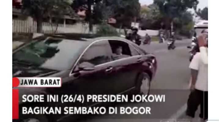 Kali ini, Jokowi membagikan sembako kepada masyarakat Bogor pada, Minggu (26/4) sore. Pembagian sembako oleh Jokowi ini tidak berbeda saat dirinya membagikan sembako kepada masyarakat Jakarta Utara beberapa hati lalu di jalan raya, tanpa memberhentikan mobilnya.