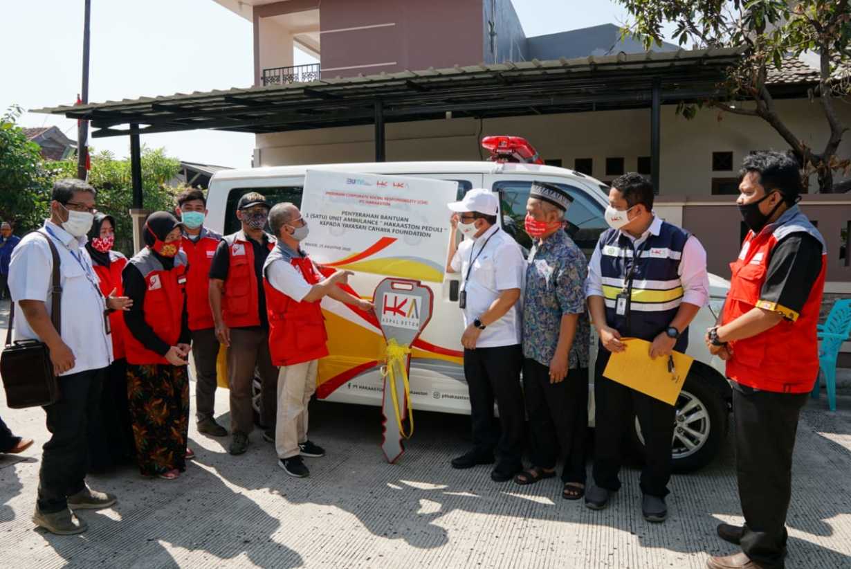 JAKARTA – Dalam upaya meningkatkan akses pelayanan kesehatan masyarakat khususnya pada kondisi pandemi Covid -19 saat ini, PT Hakaaston sebagai anak perusahaan PT. Hutama Karya, yang bergerak dibidang Manufaktur Konstruksi Aspal dan Beton memberikan bantuan berupa 1 (satu) unit mobil Ambulance kepada Yayasan Sosial “Cahaya Foundation” di Bekasi, Jawa Barat.