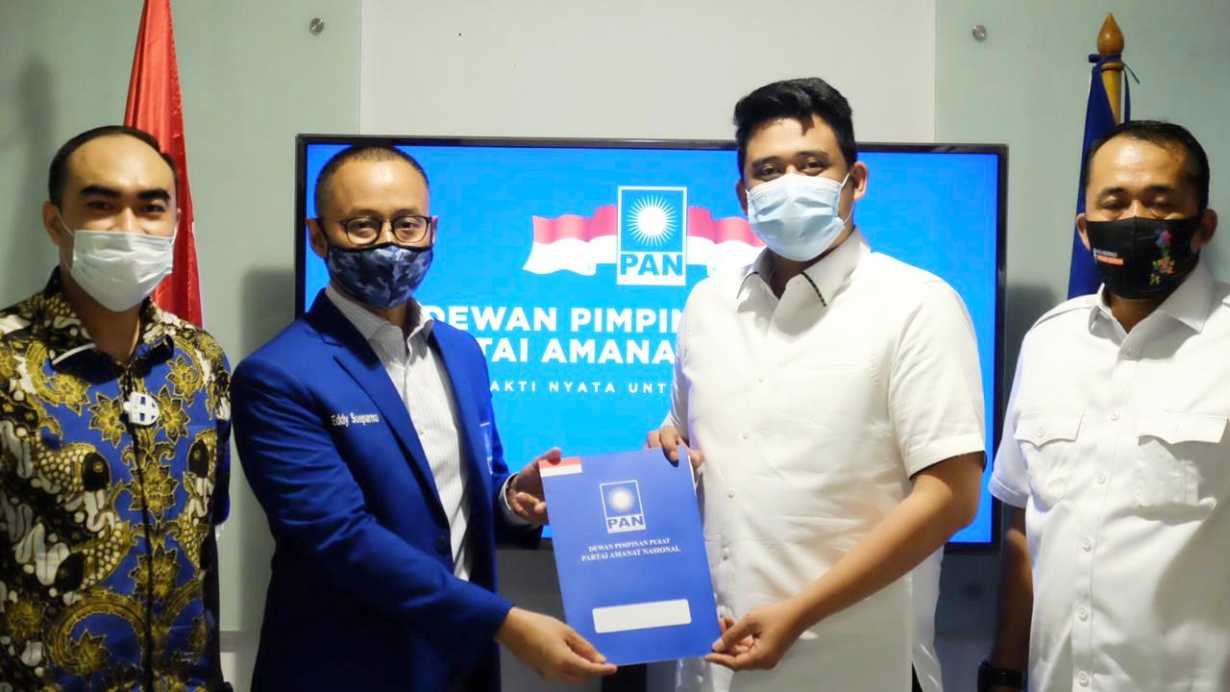 SK DPP PAN tersebut diserahkan langsung Sekjen DPP PAN Eddy Soeparno yang didampingi Wasekjen DPP PAN, Irvan Herman ke pasangan Bobby Nasution dan Aulia Rahman, Rabu (2/9).