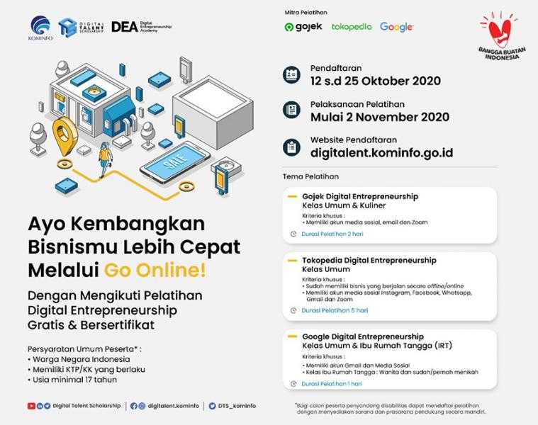 Program Digital Entrepreneurship Academy (DEA) Digital Talent Scholarship 2020 menurut Basuki Yusuf Iskandar bekerja sama dengan Gojek Indonesia, Tokopedia dan Google.