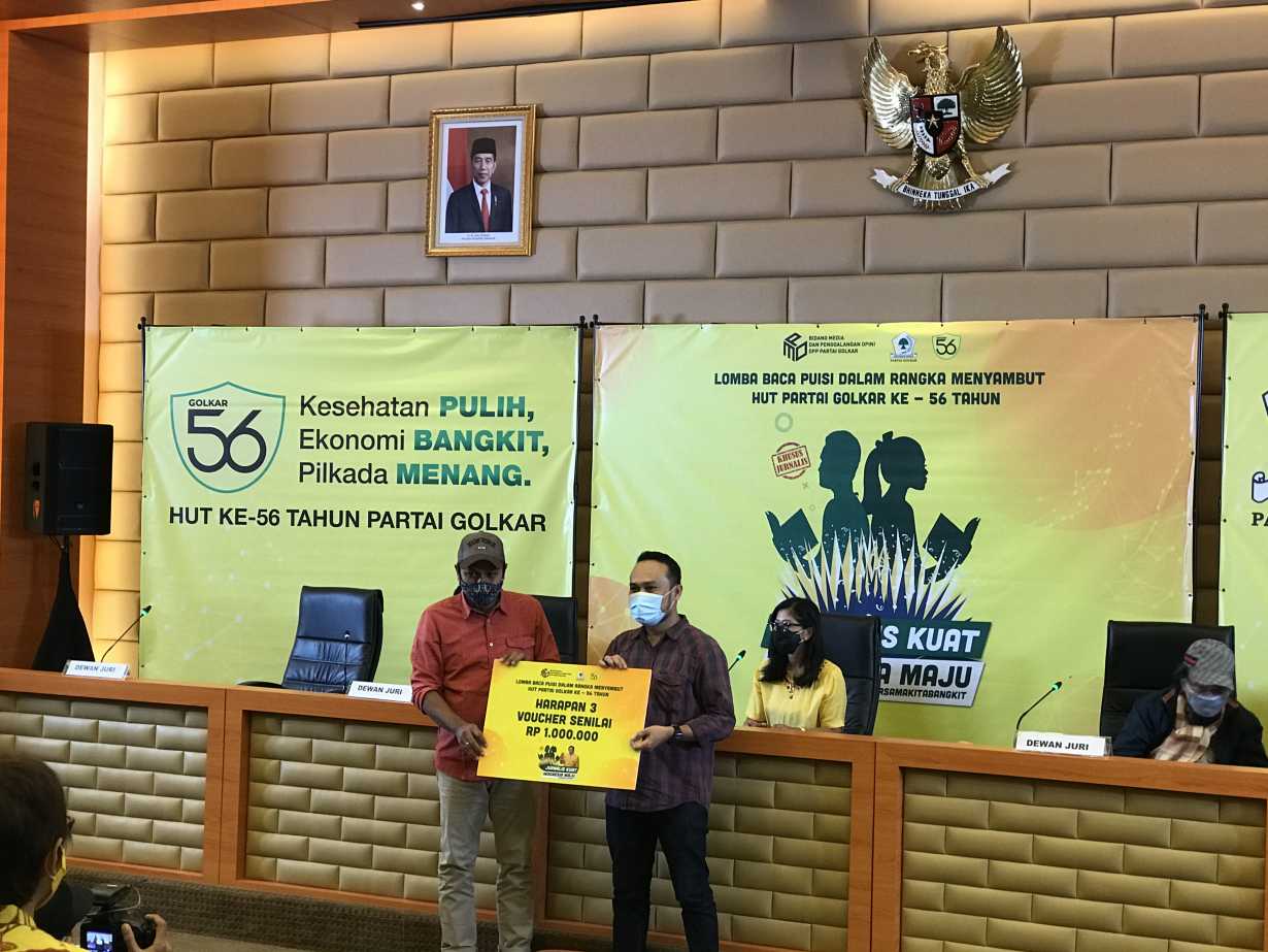“Banyak yang membuat puisi sendiri beberapa dan itu luar biasa, apresiasi terutama diwilayah Sumatera yang banyak mengirimkan peserta, tapi dari berbagai daerah di Indonesia banyak yang masuk dan partai Golkar begitu tersentuh dengan banyak seniman-seniman yang jiwa seninya muncul dari teman wartawan,” tambahnya.