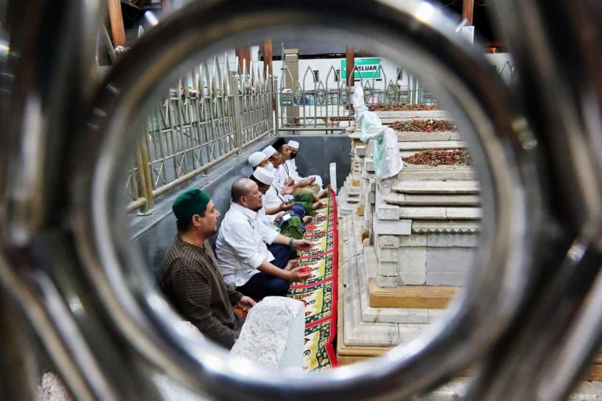 “Makanan saya yang kirim, karena belum ada air mineral yang botolan, ya saya pakai kendi isi air mateng, sama nasi bungkus,” kata Zainul yang tinggal di dekat Kompleks Pemakaman Sunan Giri.