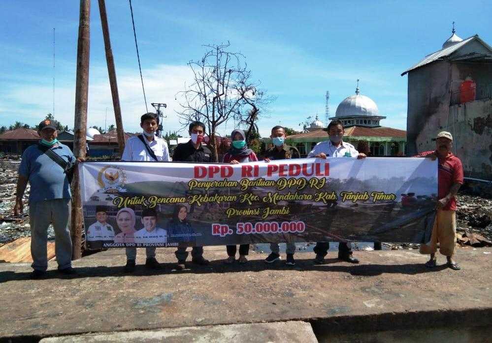 Jambi – Empat anggota DPD RI asal Jambi, Rabu (30/6/21), menyalurkan bantuan untuk korban kebakaran yang terjadi di Dusun Makmur dan Arifin, Desa Mendahara Tengah, Kecamatan Mendahara, Kabupaten Tanjung Jabung Timur, Provinsi Jambi yang terjadi pada Selasa 8 Juni yang lalu.