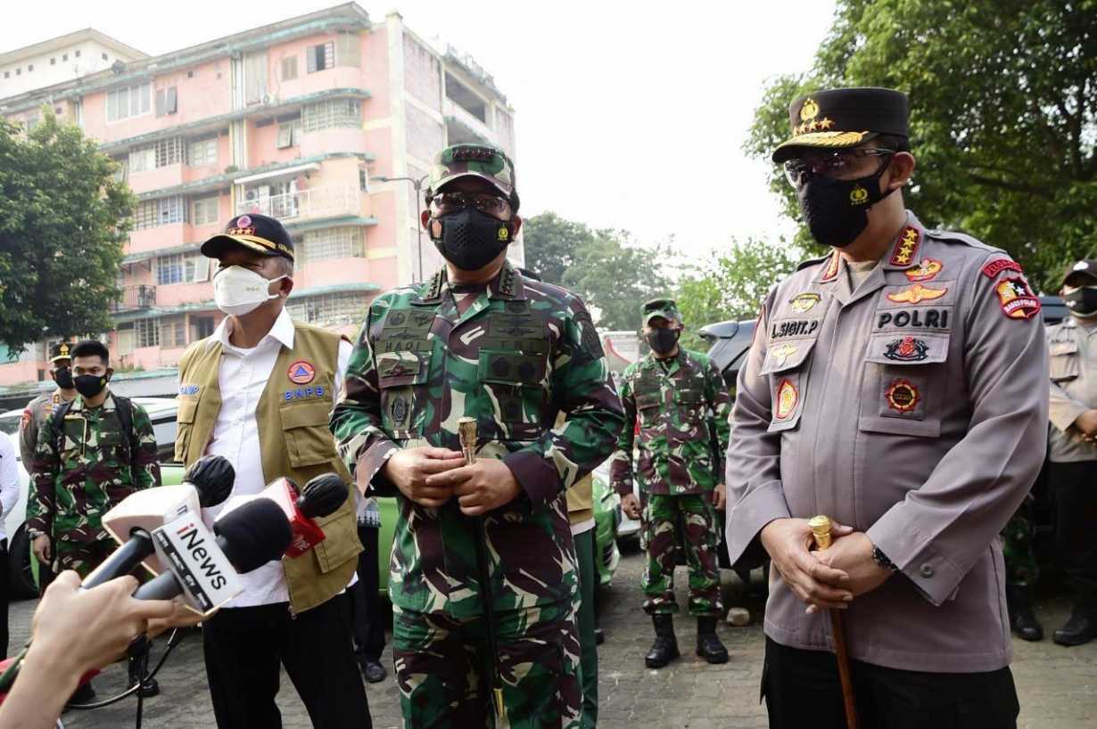 Hal tersebut disampaikan Panglima TNI Marsekal TNI Hadi Tjahjanto, S.I.P. saat meninjau pelaksanaan vaksinasi dan pembagian Bantuan Sosial (Bansos) sembako kepada warga yang terdampak pandemi Covid-19 dan PPKM level IV di wilayah Jakarta, Kamis (22/7/2021).