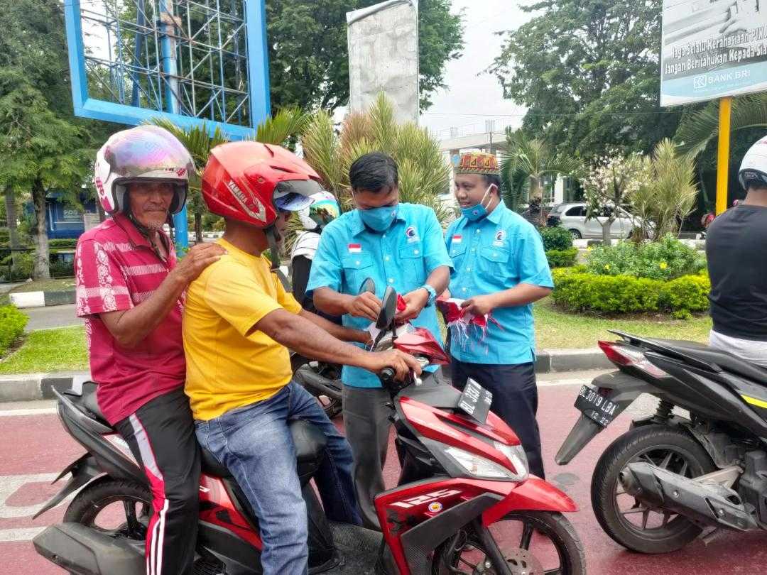 Di Aceh, pembagian Bendera Merah Putih dilakukan DPW Partai Gelora Aceh dan DPD Banda Aceh kepada para pengguna jalan pada Senin (16/8/2021) siang. Warga terlihat sangat antusias ketika dipasangkan Bendera Merah Putih di kendaraan mereka.