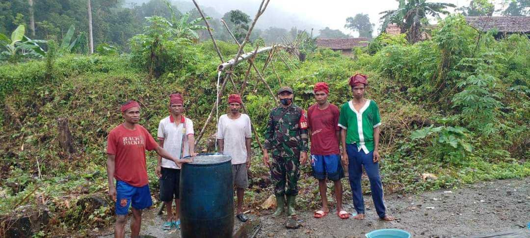BULA– Langkah Bintara Pembina Desa (Babinsa) di Desa Adabai Kecamatan Siwalalat, Seram Bagian Timur (SBT), Kopda Samsul Bahri Salampessy, patut diacungi jempol. Inisiasi pria asal Pelau Maluku Tengah ini, hingga bisa membantu warga Dusun Von untuk mendapatkan air bersih.