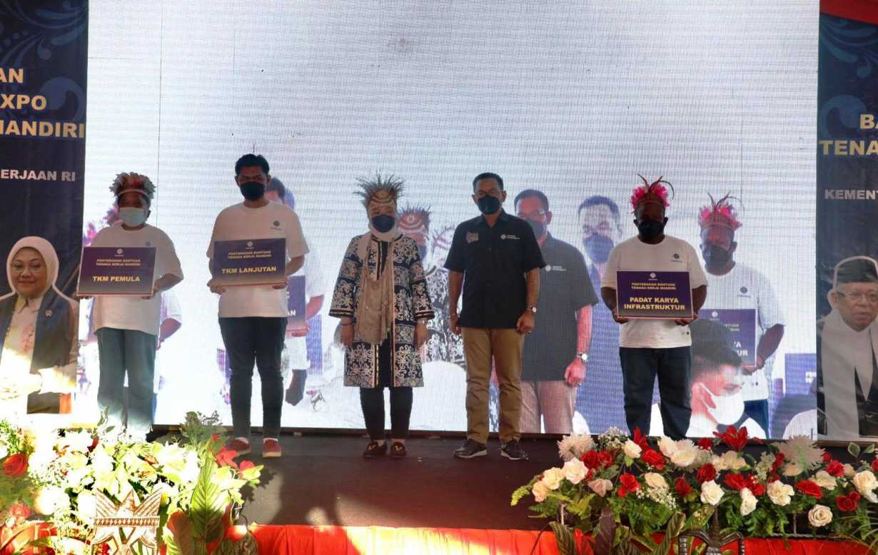Dalam kesempatan ini, Menaker Ida juga menyerahkan Bantuan Program Perluasan Kesempatan Kerja Kemnaker tahun 2020 dan 2021 untuk wilayah Papua, meliputi bantuan TKM Pemula sebanyak 61 Paket untuk tahun 2020 dan 36 paket untuk tahun 2021, serta bantuan TKM Pemula Mikro sebanyak 11 Paket.[liputan.co.id]