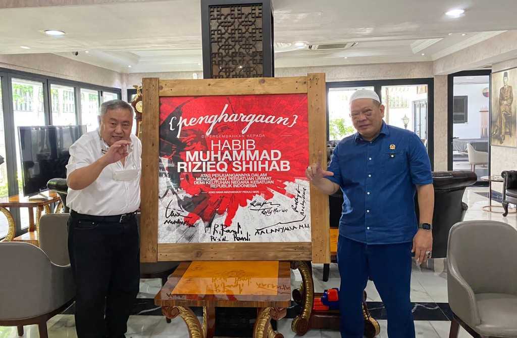 Liputan.co.id, Jakarta – Ketua DPD RI AA LaNyalla Mahmud Mattalitti menjadi salah satu tokoh yang menandatangani plakat dukungan Man of The Year 2021 kepada Habib Muhammad Rizieq Shihab, yang digagas Masyarakat Peduli NKRI di Jakarta, Jumat (31/12/2021).