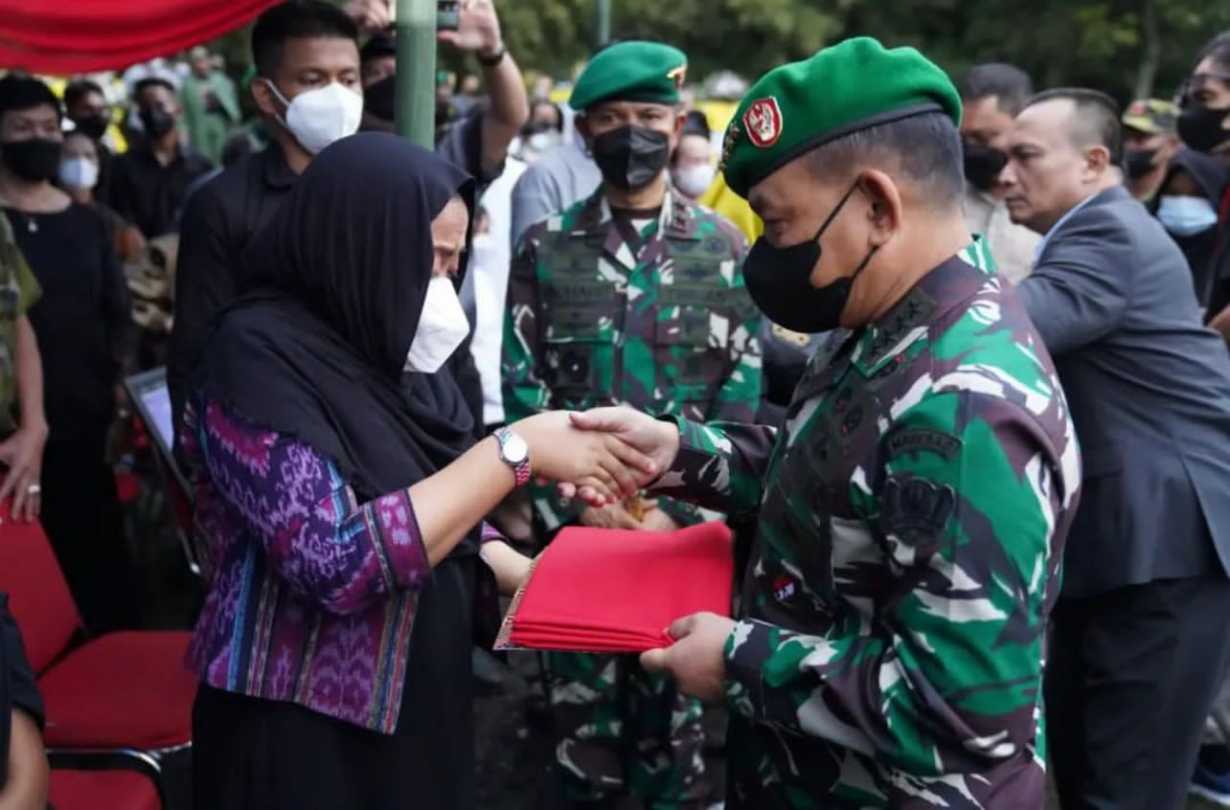 LIPUTAN.CO.ID, Bandung – Pangdam XVI/ Pattimura, Mayjen TNI Richard Tampubolon mengucapkan terima kasih kepada Kepala Staf Angkatan Darat, Jenderal TNI Dudung Abdurachman S.E., M.M., yang menghadiri sekaligus menjadi Inspektur Upacara pada pemakaman Brigjen TNI Stepanus Mahury, di TMP Cikutra, Bandung, Senin (16/05/2022).