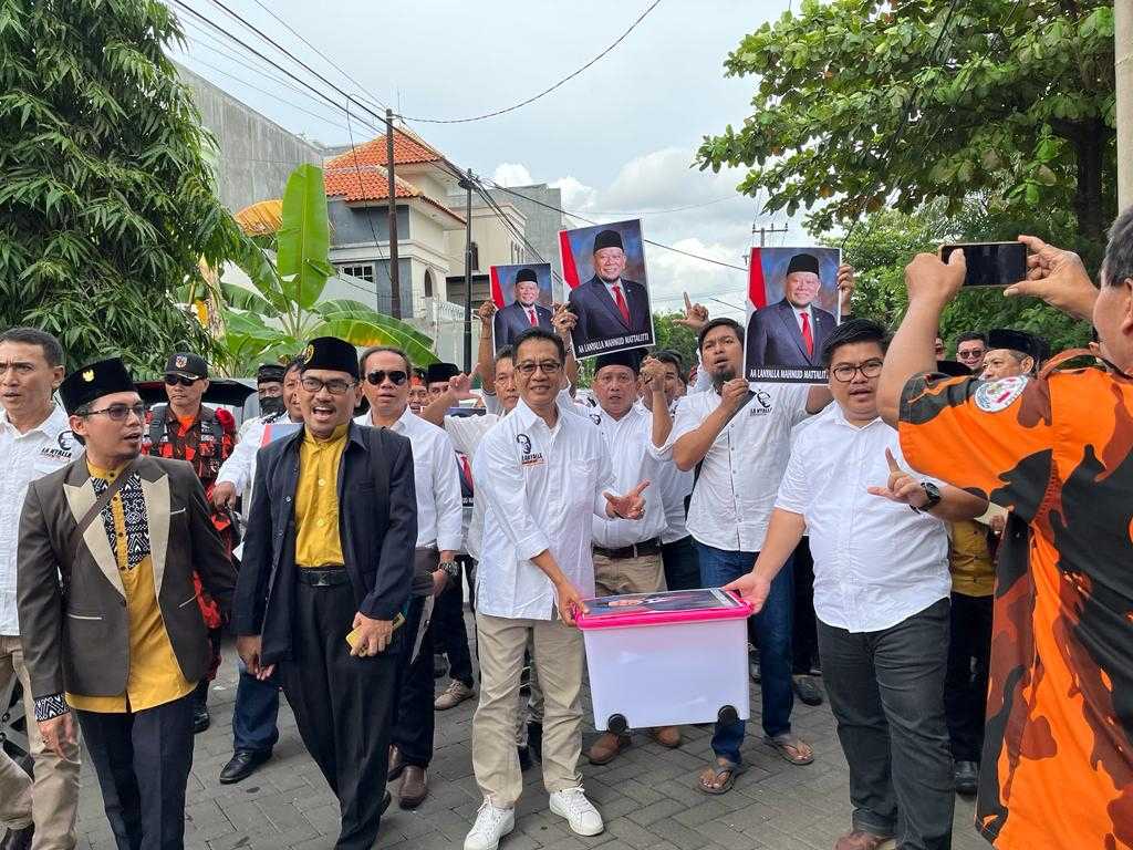 Penyerahan dukungan di Kantor KPU Jatim tersebut juga diikuti oleh ratusan simpatisan AA LaNyalla yang datang dari 38 kabupaten dan kota di seluruh Jatim.