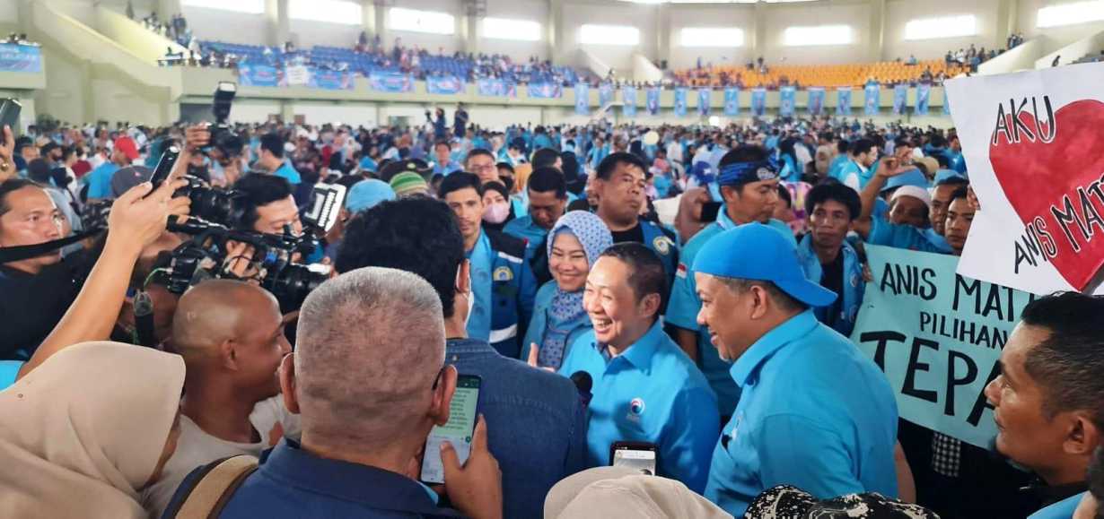 Di antara ribuan massa, tampak sejumlah poster hingga spanduk bertuliskan bertuliskan “Anis Matta Presiden 2024”, “Anis Matta Presidenku”, dan “Anis Matta untuk Indonesia Superpower Baru”, bertebaran di arena acara.