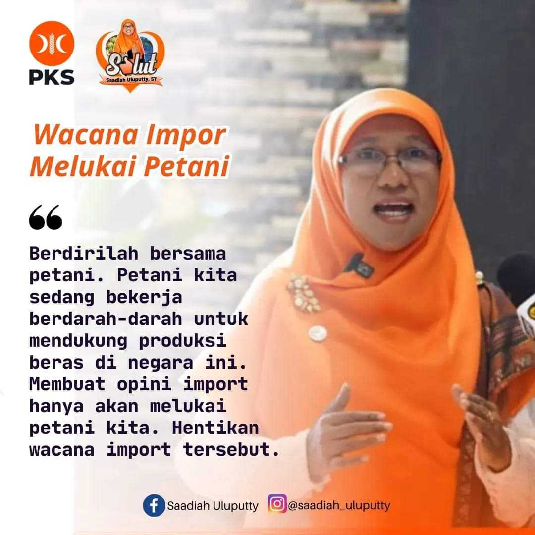 “Berhenti grasa grusu untuk membuka kran import beras. Jangan mengambil Langkah sepihak tanpa menimbang banyak aspek”, kata Saadiah Uluputty di Jakarta.