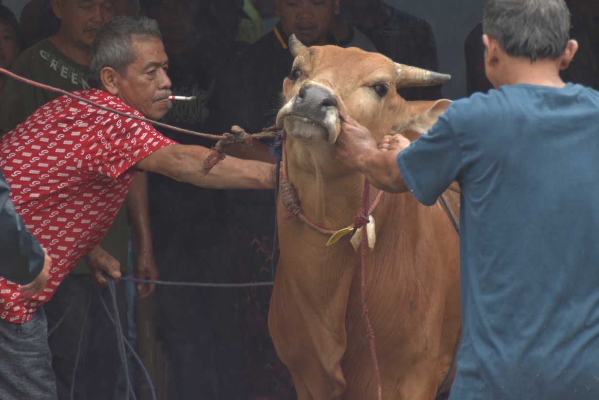 Warga Cigintung Antusias Menyembelih Hewan Kurban: