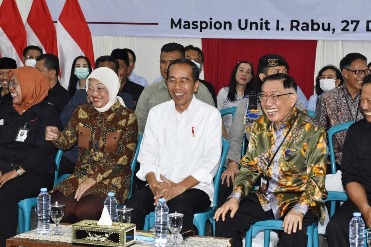Di depan ratusan pekerja dan pimpinan perusahaan, Jokowi memberikan apresiasi Maspion dalam mempertahankan eksistensi produk dalam negeri untuk mendongkrak ekonomi nasional.