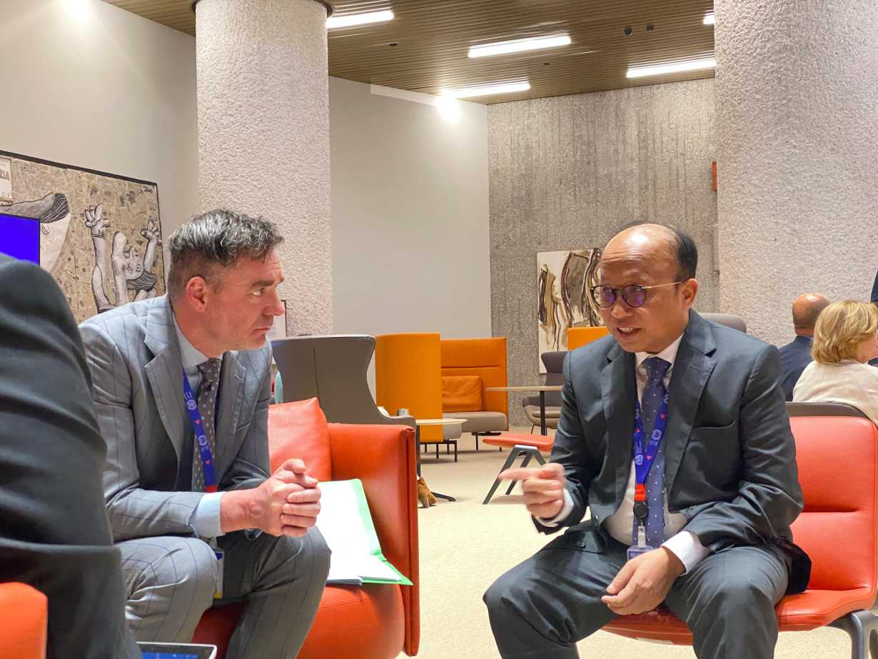 LIPUTAN.CO.ID, Jenewa – Sekretaris Jenderal Kementerian Ketenagakerjaan Anwar Sanusi mewakili Pemerintah Indonesia mengadakan pertemuan bilateral dengan Atase Sosial dan Ketenagakerjaan Belanda Roel Van de Ven, disela-sela Pertemuan Tingkat Tinggi International Labour Organization (ILO) di Jenewa Swiss.