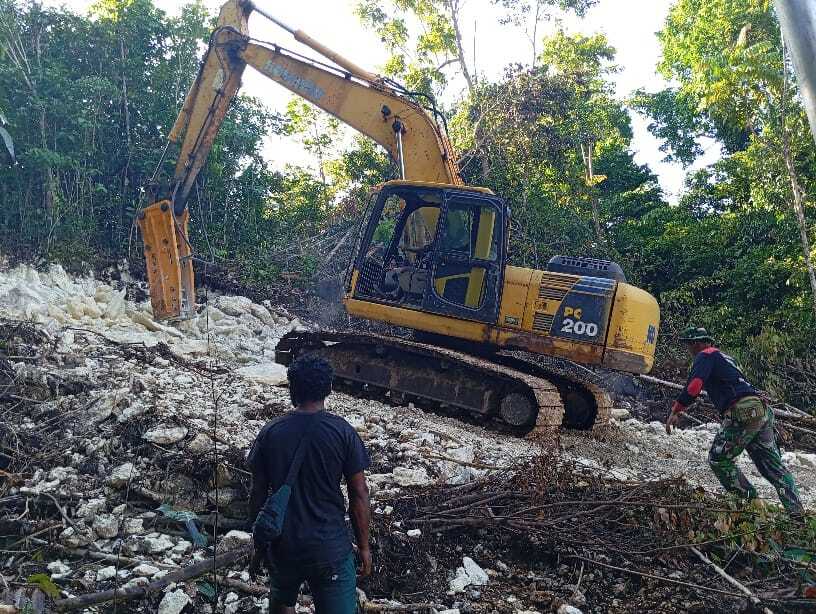 LIPUTAN.CO.ID, Raja Ampat – Satgas TNI Manunggal Membangun Desa (TMMD) Ke-122 Kodim 1805/Raja Ampat terus mempercepat penyelesaian pembangunan jalan di Kampung Saporkren, Distrik Waigeo Selatan, Kabupaten Raja Ampat, Sabtu (12/10/2024).
