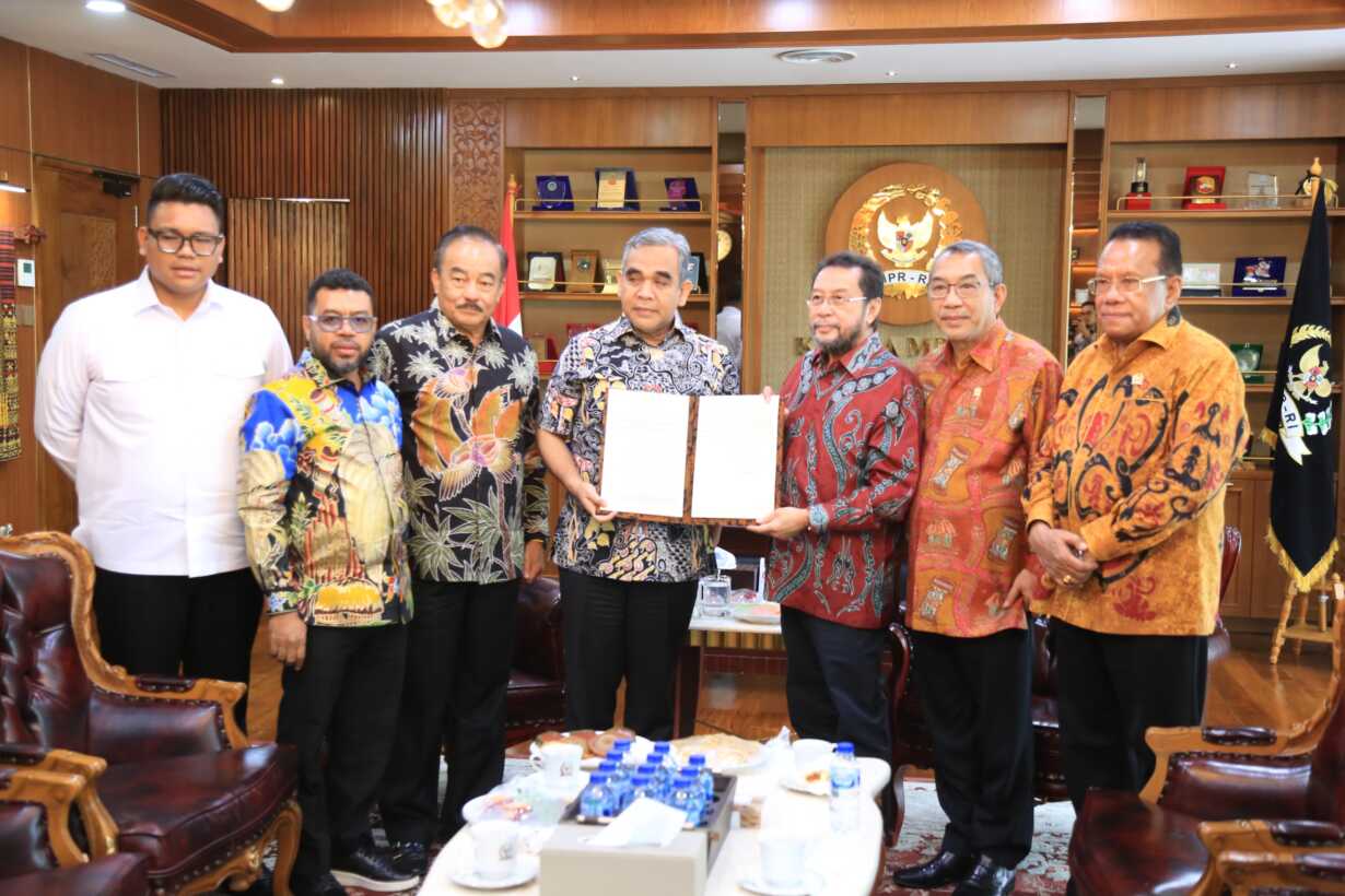 LIPUTAN.CO.ID, Jakarta – Wakil Ketua DPD RI Yorrys Raweyai, sekaligus Ketua Forum MPR For Papua menemui Ketua MPR RI Ahmad Muzani untuk membahas inisiatif strategis MPR For Papua, di Gedung Nusantara III, Kompleks Parlemen, Senayan, Jakarta, Rabu (23/4/2025).