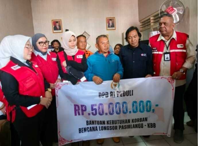 LIPUTAN.CO.ID, Bandung Barat – Anggota Komite III DPD RI Agita Nurfianti bersama tiga anggota DPD RI asal Jawa Barat, yaitu Alfiansyah Komeng, Jihan Fahira, dan Aanya Rina Casmayanti menyalurkan bantuan DPD RI Peduli, berupa kebutuhan pokok dan uang senilai Rp50 juta bagi korban bencana tanah longsor di Desa Pasirlangu, Kecamatan Cisarua, Kabupaten Bandung Barat, Sabtu (31/1/2026).
